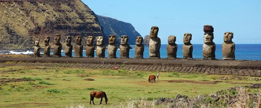 Ovo je jedno od najizoliranijih mjesta na svijetu gdje se nalaze ogromni kipovi. Znanstvenici nemaju odgovore na pitanje tko ih je napravio. Cijelo područje je potpuna misterija, ovdje se još nalaze nezavršeni kipovi, ceremonijalna sela u kojima su 53 kamene kuće bez prozora i vrata i mnoge druge misterije. Za ‘Pupak svijeta‘ , odnosno Rapa Nui, kako ga zove autohtono stanovništvo, se vjeruje da nosi tajne svemira te prikuplja najvažnije duhovne energetske linije Zemlje.
