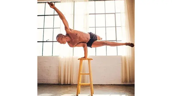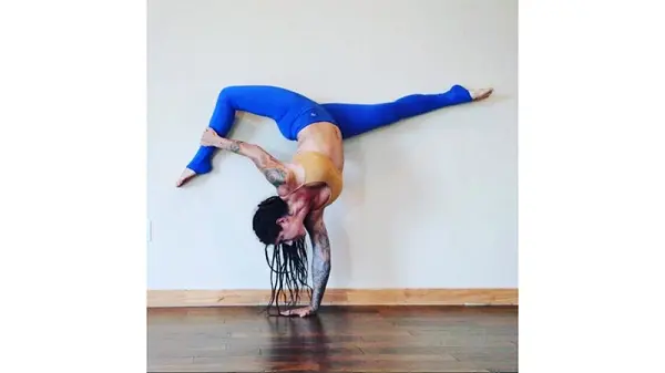 Koya Webb izvodi asanu koja je napredna varijacija Sirena poze.