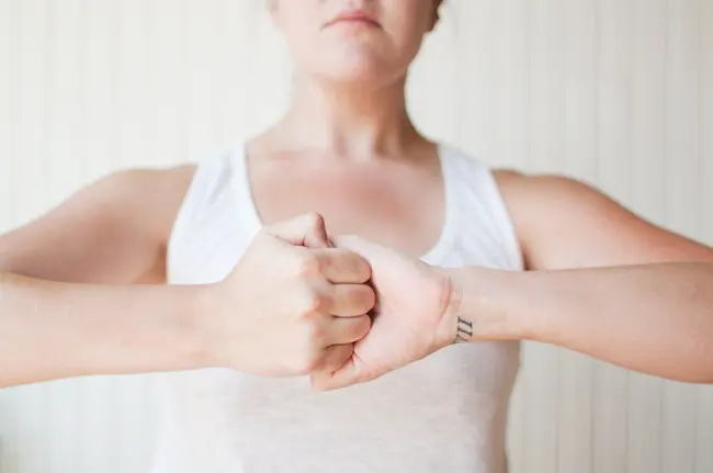 - Sada uhvatite lijevu ruku s desnom rukom.