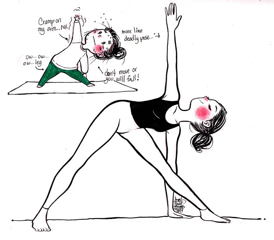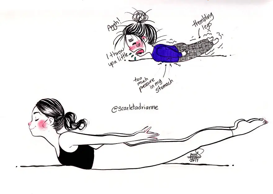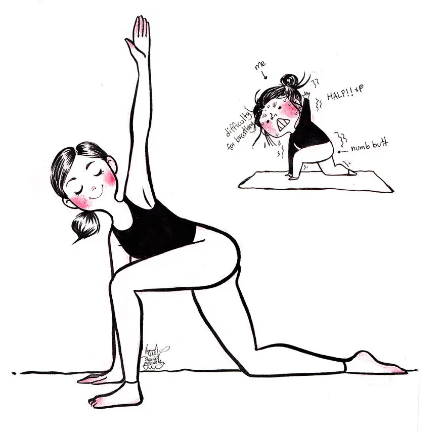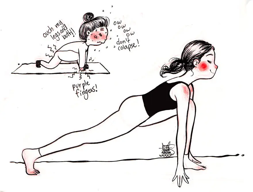 Inače patim od nesanice i malo sam spavala, a joga mi je pomogla i oko toga, tako da sam se od prvog dana posvetila pravilnom izvođenju, i vjerujte, nije bilo lako. Mučila sam se sa svakom pozom i imala poteškoća s usredotočenim disanjem. Puno znoja, mučenja i pomisli da ću umrijeti. Onda sam odlučila nacrtati ilustracije koje prikazuju kako izgleda joga učiteljica i u pozadini kako izgledam ja u istoj asani. Počela sam objavljivati ilustracije na svom Instagram profilu, ali nisam očekivala da će ljudi tako reagirati. Bila sam zahvalna i sretna što se i mnogi drugi prepoznaju u mom iskustvu i mojim ilustracijama.