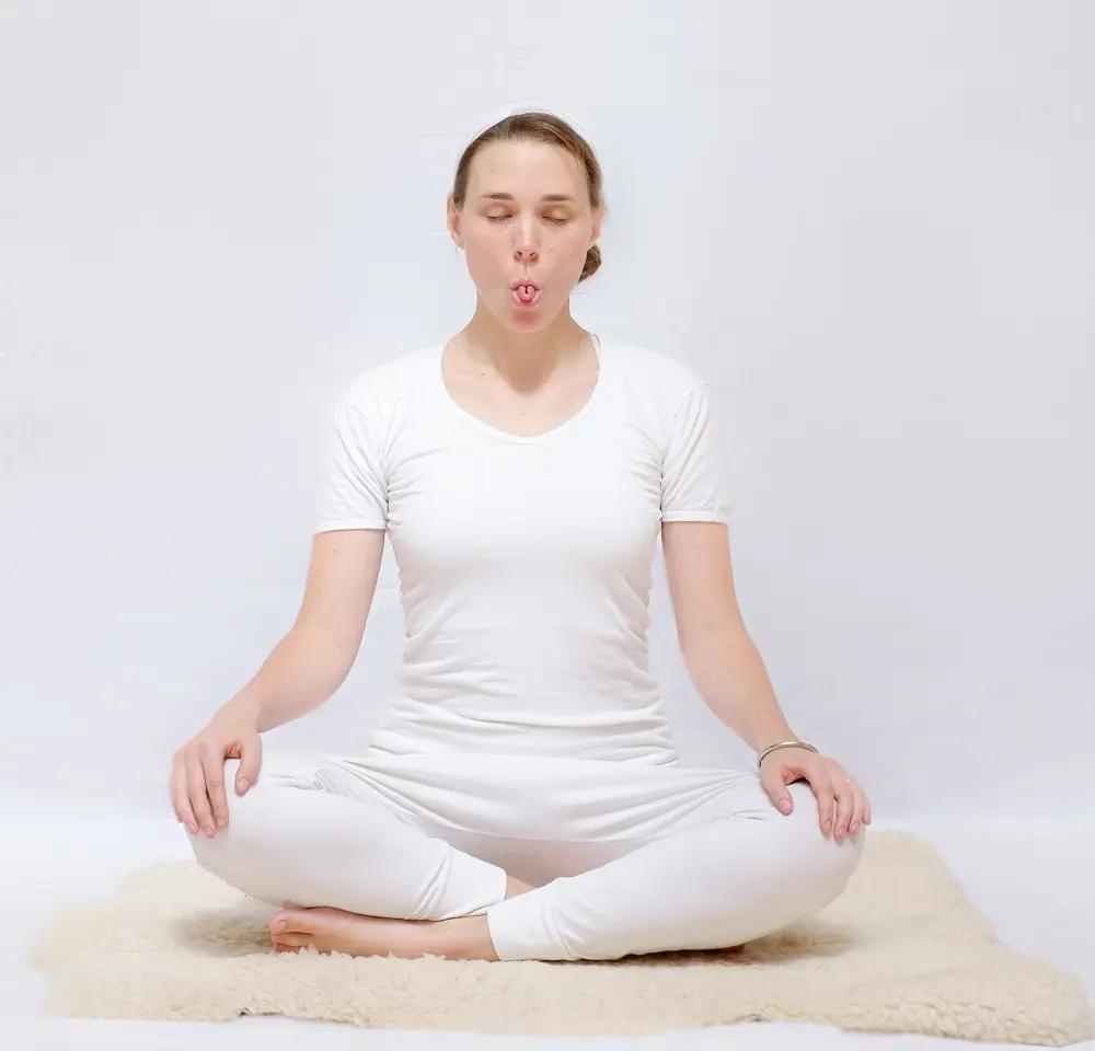Udobno sjednite da vam leđa budu ravna. Ruke udubno smjestite u krilo, dlanove okrenite prema gore. Zatvorite oči. Kako biste se osvježili udahnite kroz jezik u obliku cjevčice. Zatvorite usta. Vrhom jezika lagano dodirnite nepce. Izdahnite kroz nos. Ponovite udišući kroz uvijeni jezik, izdahnite kroz nos dok vam vrh jezika dodiruje nepce. Uspostavite opušteni, smirujući ritam. Nastavite 1-2 minute dok ne osjetite fizičko i mentalno osvježenje. Primjetite povećanu jasnoću, osvježenje i prostranost u tijelu i umu.