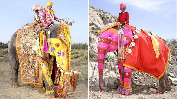 Za ovaj festival, slonovi su lijepo njegovani i odjeveni u šarene i vezene baršunaste prostirke i druge ukrase poput ogromnog nakita i zvona. Intrigantni tradicionalni indijski motivi su oslikani na njihovim tijelima. Sve su to pažljivo napravili njihovi Mahoutsi (čuvari) nakon što su slonovima priredili kupku, a oni su također obučeni u svečanu brokatnu odjeću i kraljevske turbane.