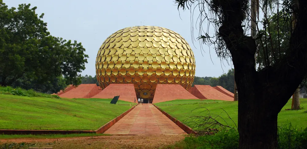 Grad ugošćuje otprilike 2,400 ljudi iz oko 50 zemalja koji pridonose njegovu blagostanju i pomažu u izgradnji održive zajednice. U njegovom središtu je ikonski Matrimandir, ogromna pozlaćena kugla koju okružuje 12 parkova, koji simboliziraju rođenje nove svijesti. Ovo je mjesto za meditaciju i tihu koncentraciju za osvještavanje. Ima potpuno bijelu unutarnju komoru, a u nekim dijelovima ima internet vezu.