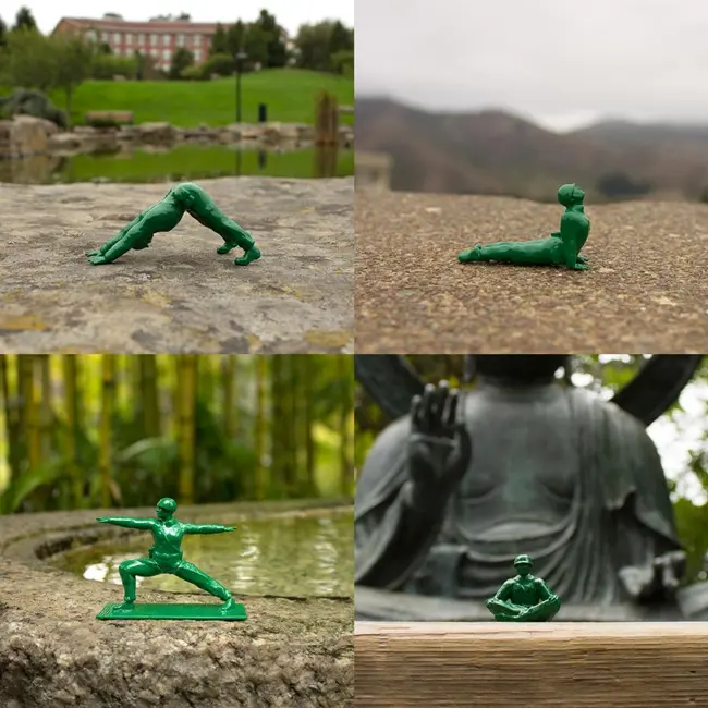 Prakticiranje yoge, kao i sva filozofija koja se krije iza te drevne istočnjačke prakse je sušta suprotnost ratu. Zato su ovi mali plastični vojnici koji zapravo promiču nasilje dobili drugu priču zahvaljujući dizajneru Danu Abramsonu. Od same ideje do realizacije bilo je potrebno godinu dana. Stotine sati utrošenog u skiciranje, topljenje originalnih figurica, 3D skeniranje i 3D ispisa rezultiralo je ovim simpatičnim figurama vojnika u različitim yoga asanama koji šalju poruku vedrine i pozitivnosti nasuprot okrutnoj i nasilnoj prirodi rata.